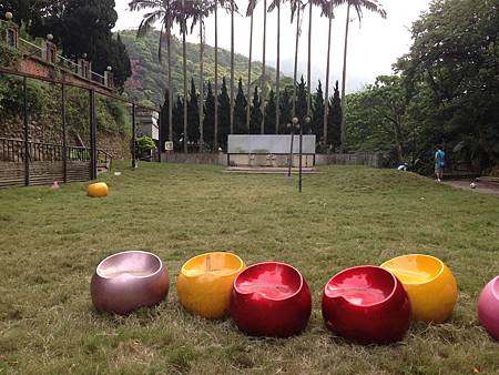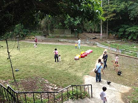 過了剛剛那個門之後有樓梯往下走,下面就有一個草皮,可以讓小朋友跑來跑去玩球