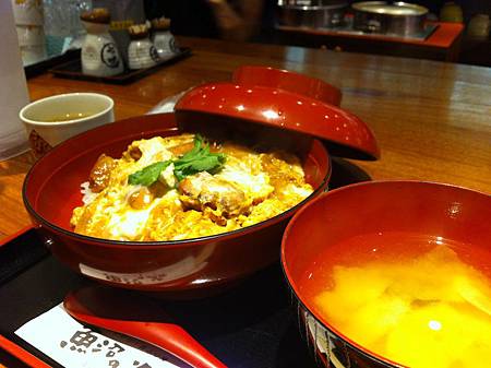 那家餐廳也很妙,只賣三種套餐,分別是照燒豬肉井,親子井,及白飯附兩顆生蛋套餐,因為我們不敢吃生蛋所以就點了親子井和豬肉井,