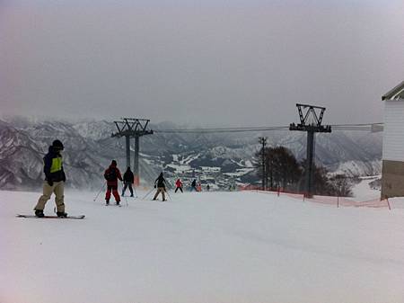 我們坐纜車坐到第二高的滑雪點,今天因為風太大,所以最高的1181M的點沒有開放,不過我也沒那麼強啦,一年才滑一次所以程度永遠都只停留在初級和中級之間~~哈哈